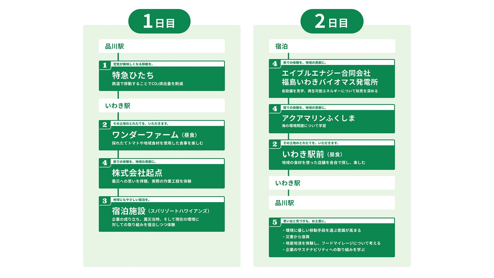 1泊2日の中で、生徒たちはGREEN JOURNEYが掲げる5つのポイントを意識し、サステナブルな旅のカタチを実現しました。