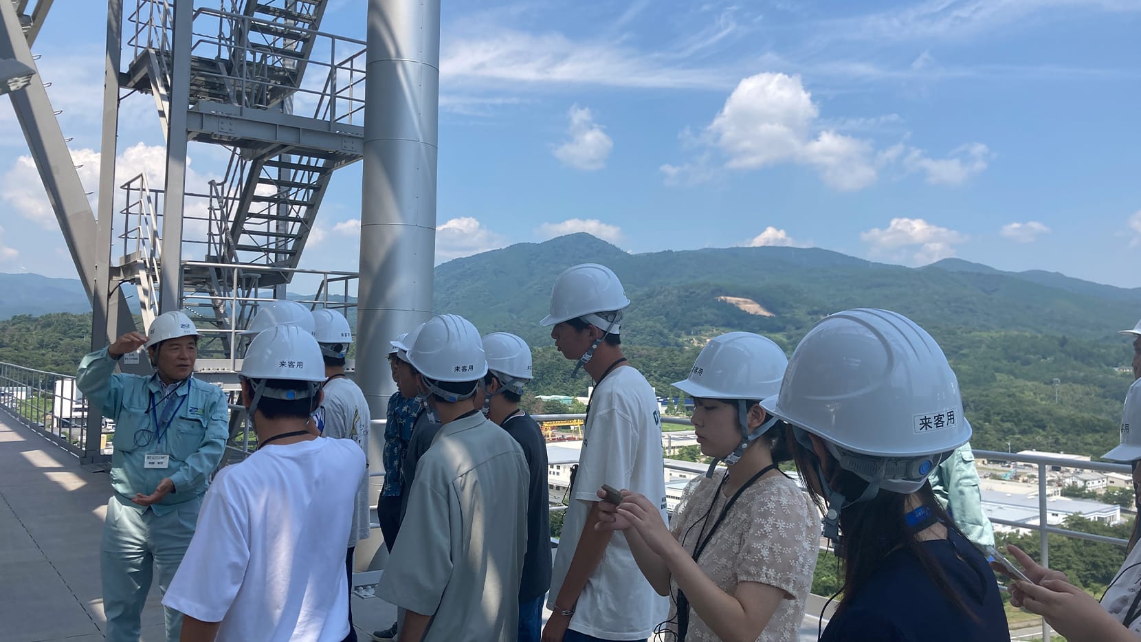 今回の訪問では工場の最上部にある設備や、発電の場面を間近で見学させていただきました。さまざまなお話を聞く中で、木材は成長過程で二酸化炭素を吸収するため、燃やしても大気中の二酸化炭素の量を増やさないカーボンニュートラルであることを教えていただき、環境への負担が少ない点が印象的でした。
